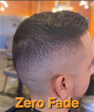 Transitioning from one haircut length to another which removes hair to a “Zero” length or greater. Maximum closeness achieved, but no use of box shaver to fade to skin. Shaver only used for neckline and sideburn finish.