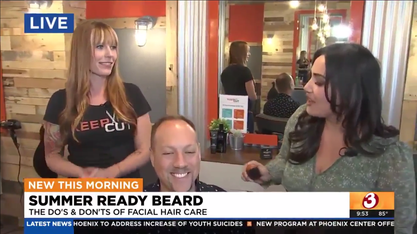 PHOENIX (3TV/CBS5)Summer Ready Beard PHOENIX (3TV/CBS 5) – Regional Manager, Brittney, discusses the ins and outs of summer beard maintenance with Monica from 3TV/CBS5.